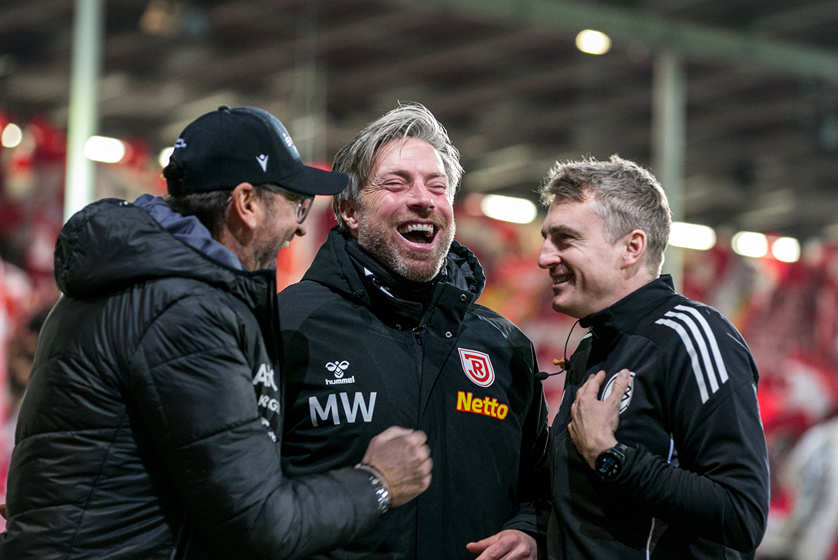 Als Erik Engelhardt die Hausherren im ersten Durchgang mit einem Doppelpack in Führung gebracht hatte, sprach vieles für eine Niederlage zum Jahresabschluss. Doch weil nach der Pause auch Christian Kühlwetter doppelt traf, nahm der Jahn noch einen Punkt mit. Dieser fühle sich "ein bisschen wie ein Sieg an", sagte Trainer Michael Wimmer nach der Partie im "MagentaSport"-Interview. "Hut ab und Respekt vor meiner Mannschaft."