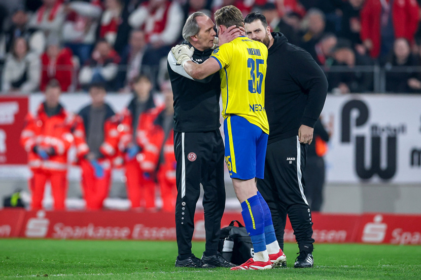 Mit lauten Sprechchören aus der Fankurve wurde er nach der Partie bedacht, Felix Wienand, der sich zu diesem Zeitpunkt bereits im Krankenhaus befand. Die Gesundheit des Torhüters stand nach der Partie an erster Stelle. Wie Trainer Uwe Koschinat bei "MagentaSport" berichtete, gehe es dem 23-Jährigen "wirklich nicht gut". Laut RWE wurden bei einer ersten Untersuchung ein Knalltrauma sowie eine "akute Belastungsreaktion" festgestellt.